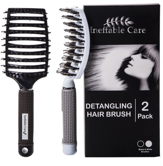 Boar Bristle Hair Brush Set – Curved and Vented for Wet and Dry Detangling Hair Brush for Women Long, Thick, Thin, Curly & Tangled Hair Vent Brush - Stocking Stuffers Gift Kit